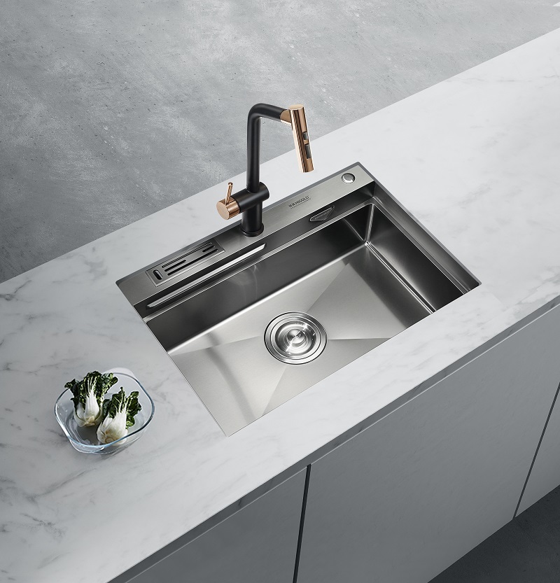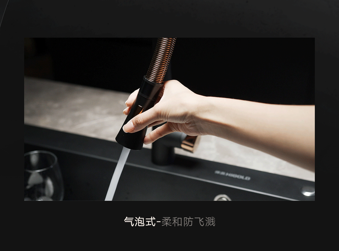 NN系列水槽组合套装槽体采用环保黑钛纳米工艺覆上薄膜 鉴黄师app下载,水滴在薄膜上立成球体,自由滚动带走污迹,油污酱汁一冲即净,水过无痕,轻松自洁。