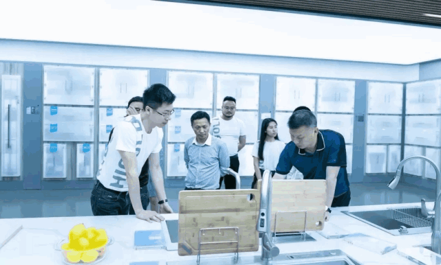 ▲汪总详细介绍水槽系列产品