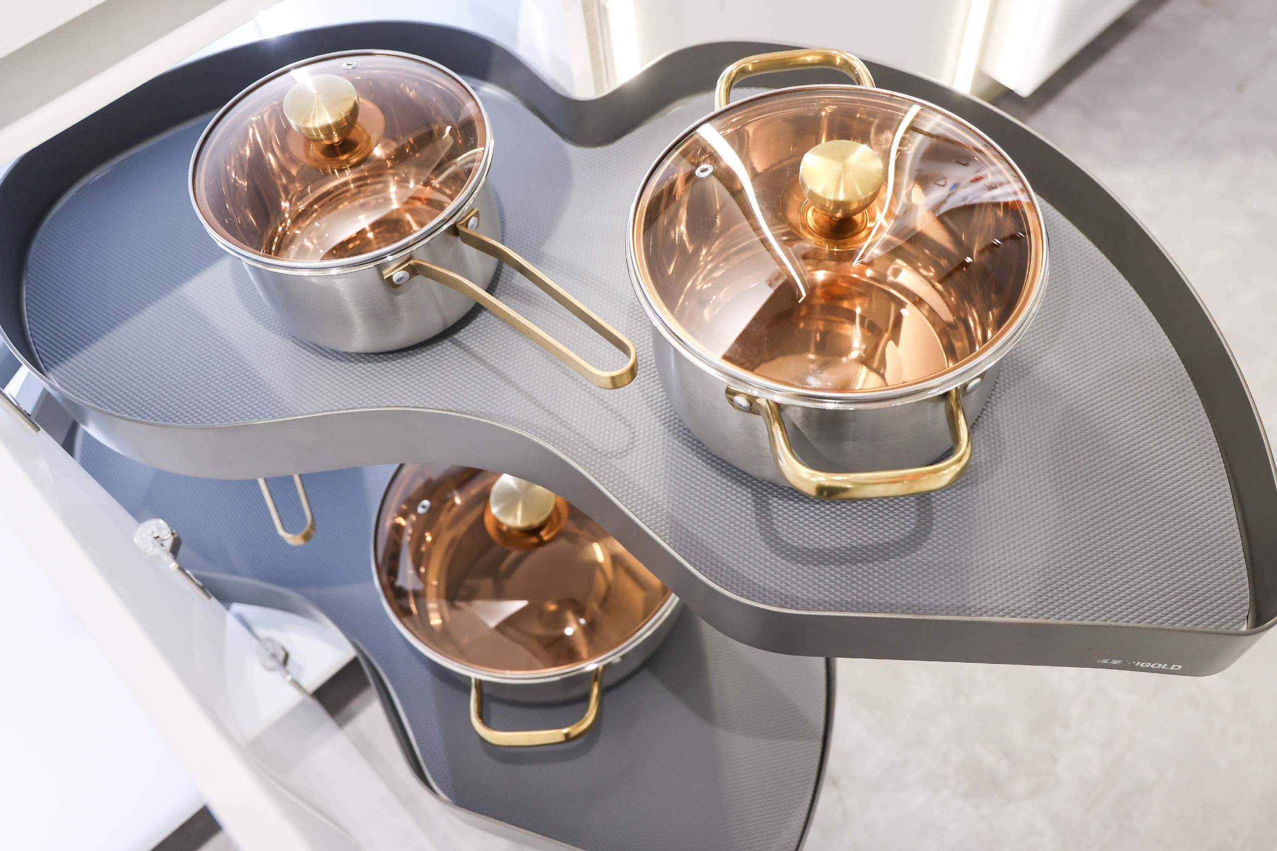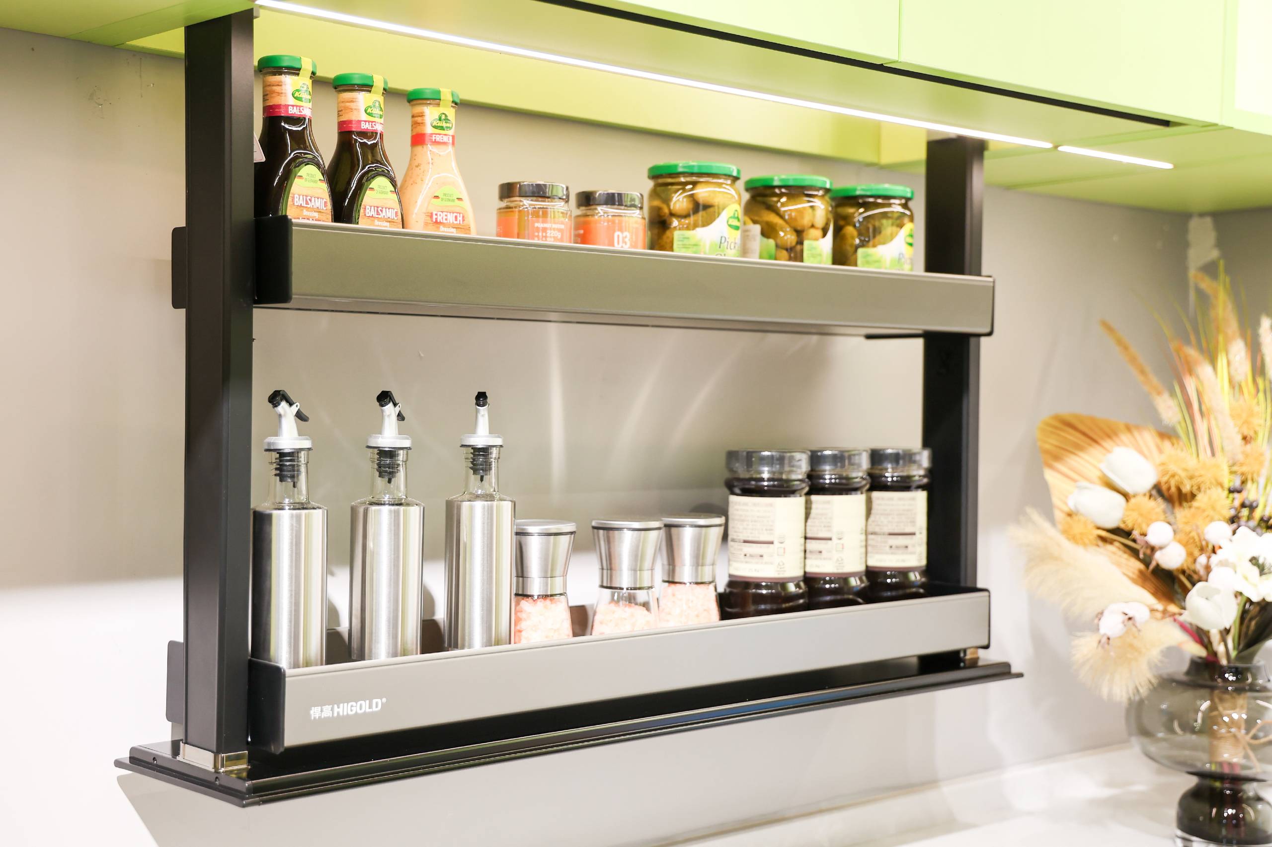 悍高收纳五金与基础五金新品秉持极简风、高级风,以雕刻现代精神与都市灵魂的高雅简奢惊艳与会观众。无缝焊接,底板二合一的全新升级希勒家族系列;行业首创、全新支杆设计的360°高柜旋转篮陀飞轮;荣获国家发明专利,独特单杆设计的飞碟3.0;致敬力学、随意悬停的星云升降机;冠冕国际双料设计大奖的希勒4.0系列拉篮;抽中带抽、灵动收纳的基多拉系列拉篮;匠心细节、摩登配色的BV·莫兰绿系列;加厚电镀、钢劲品质的M2.0静音阻尼铰链。