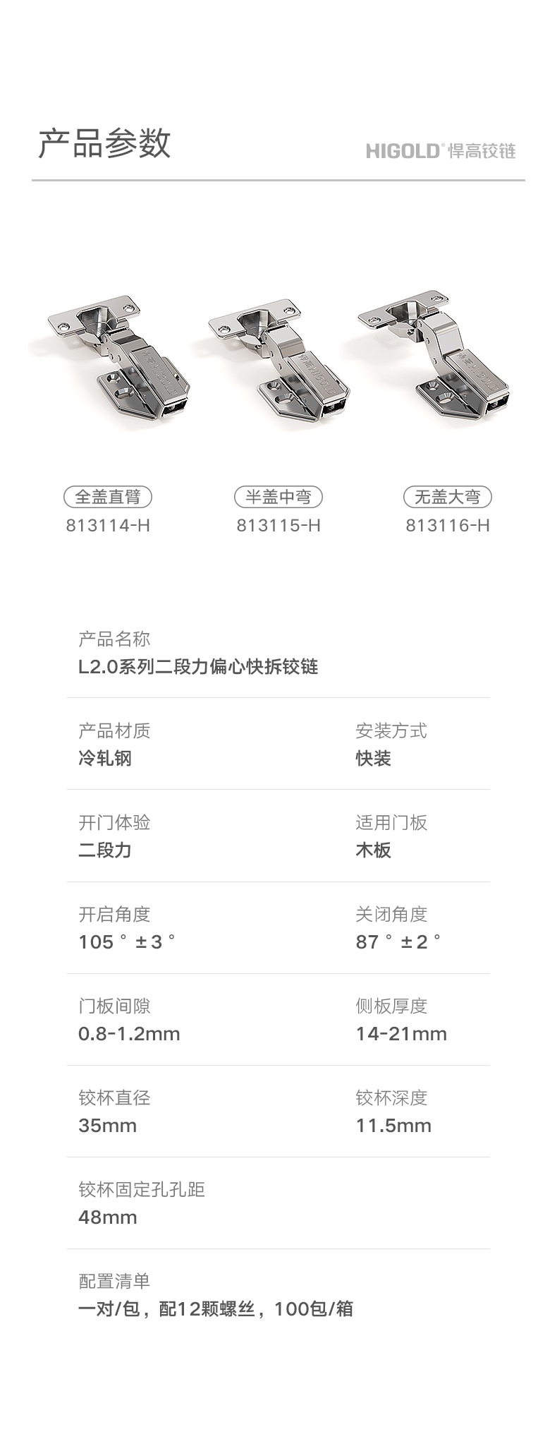 悍高L2.0偏心快装铰链